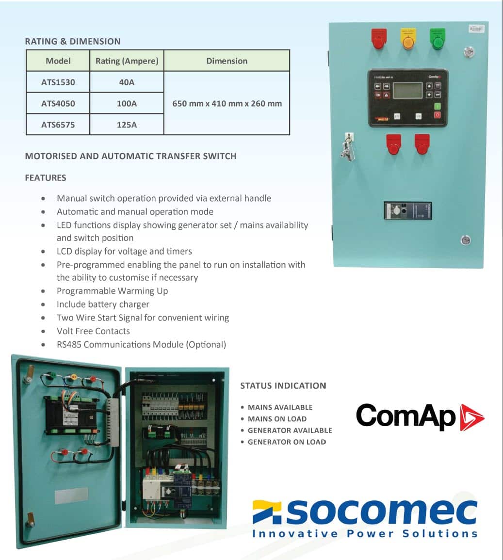 ATS & AMF 5 Kva – 500 Kva dilengkapi dengan Mottorize untuk perpindahan beban. Tampilan panel lebih simpel dalam pembacaan parameter melalui layar LCD modul.
